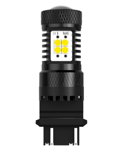 The 3157 LED bulbs of the 2US6T series are designed to be more compact in size than their halogen counterparts, making them easy to install in assemblies where space is at a premium. The compact, double-sided LED chips emit a more uniform beam of light similar to halogen bulbs.