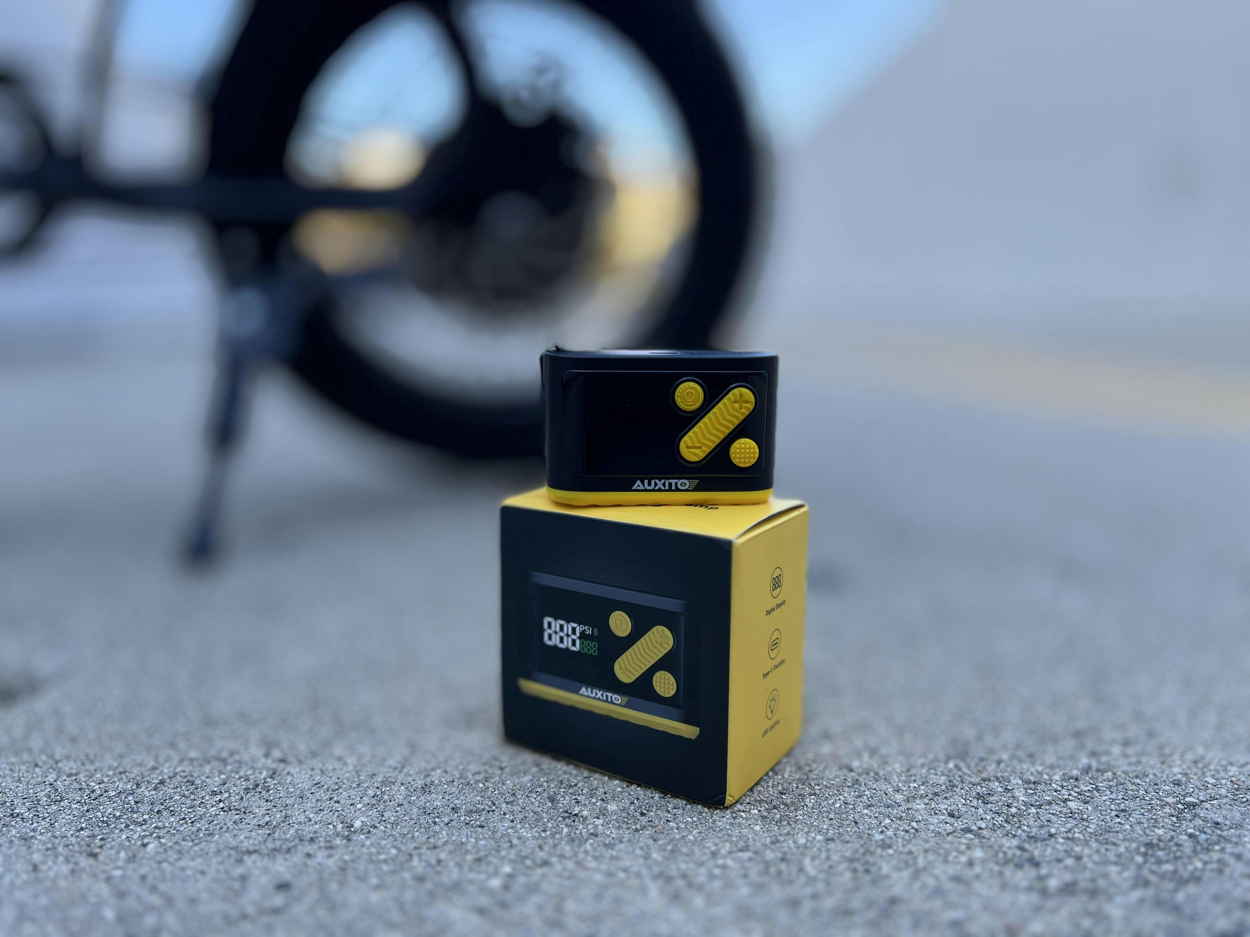 AUXITO A101 Mini Cordless Bike Pump 120 PSI, Electric Tire Inflator with Gauge, Presta & Schrader Valve, Fast Inflate for Road & Mountain Bikes, E-Bikes